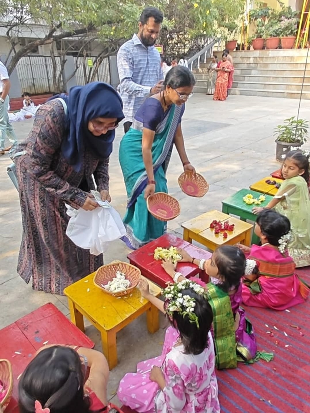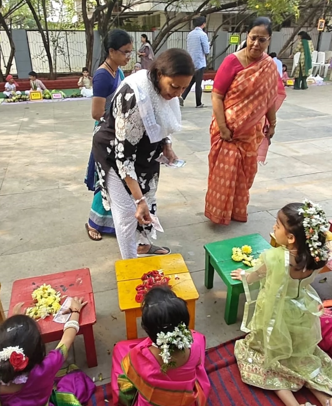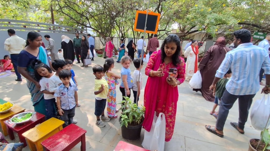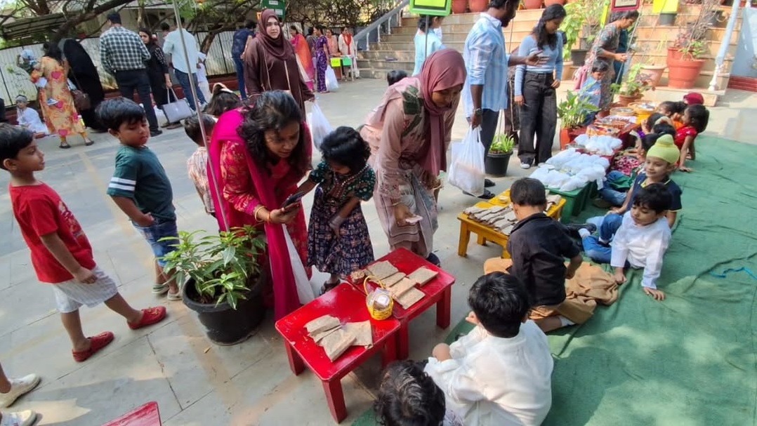 Students actively participated by selling fresh flowers, fruits, vegetables, and other items typically sold in a Rythu Bazaar. They transformed into “little vendors”, gaining a better understanding of the dignity of labour and the importance of farmers and local markets.